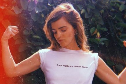Emma Watson, apareció de nuevo en redes sociales, esta vez, con una camiseta que lleva un mensaje alusivo a la comunidad transexual, “Los derechos trans son derechos humanos”, se lee en el estampado.