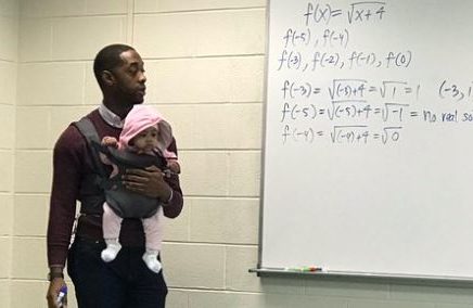 Nathan Alenxander es un profesor que permite a sus estudiantes llevar a sus bebés a clases en el Morehouse College de Atalanta, Estados Unidos. Cuando la hija de un alumno comenzó a ponerse inquieta, él decidió cargarlo para que ella lograra tomar apuntes.