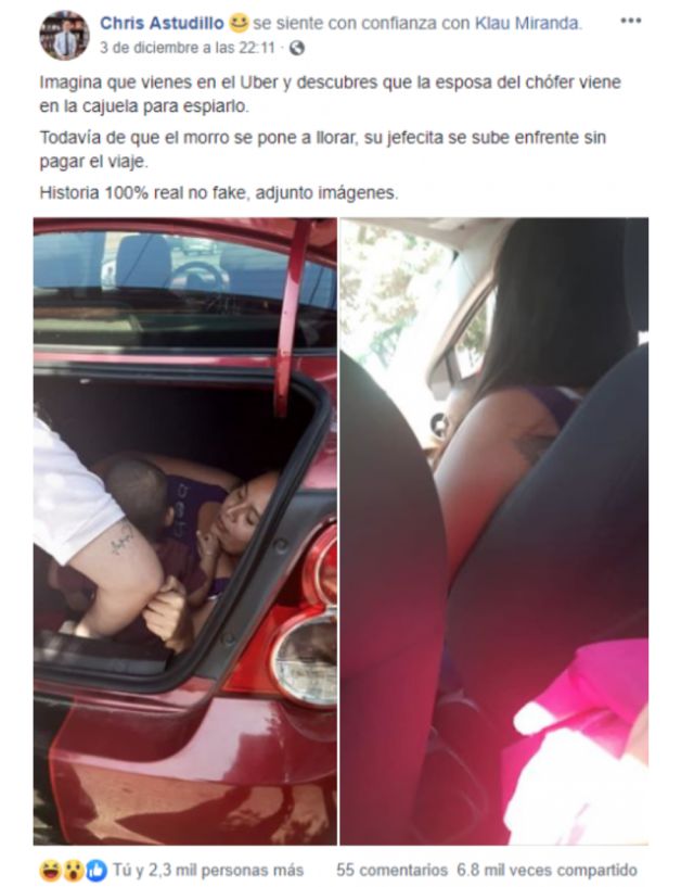 Este ‘pobre hombre’ decidió parar el viaje y revisar la cajuela de su automóvil, para su sorpresa en el interior de esta se encontraba su esposa con su pequeño hijo. La mujer quería asegurarse de que su marido no le fuera infiel y decidió espiarlo en su propia unidad.