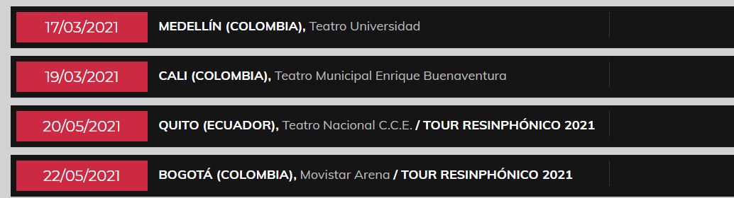 Raphael se presentará en Medellín el 17 de marzo en el Teatro de la Universidad de Medellín; en Cali el 19 de marzo en el Teatro municipal Enrique Buenaventura y en Bogotá estará el 22 de mayo en el Movistar Arena.