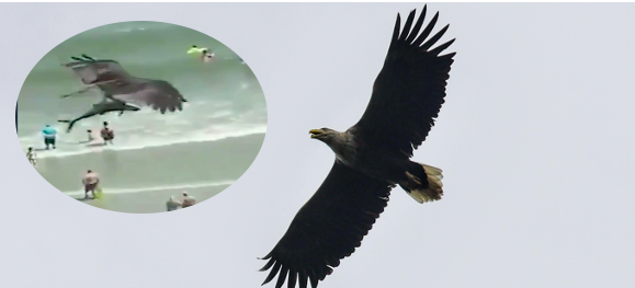 Un águila atrapa con sus garras un tiburón y se lo lleva volando