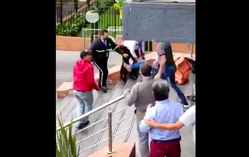 En Twitter se ha viralizado un video en el que unos domiciliarios se enfrentan a unos residentes en Bogotá, luego de que ellos les reclamaran por la falta de distanciamiento social.
