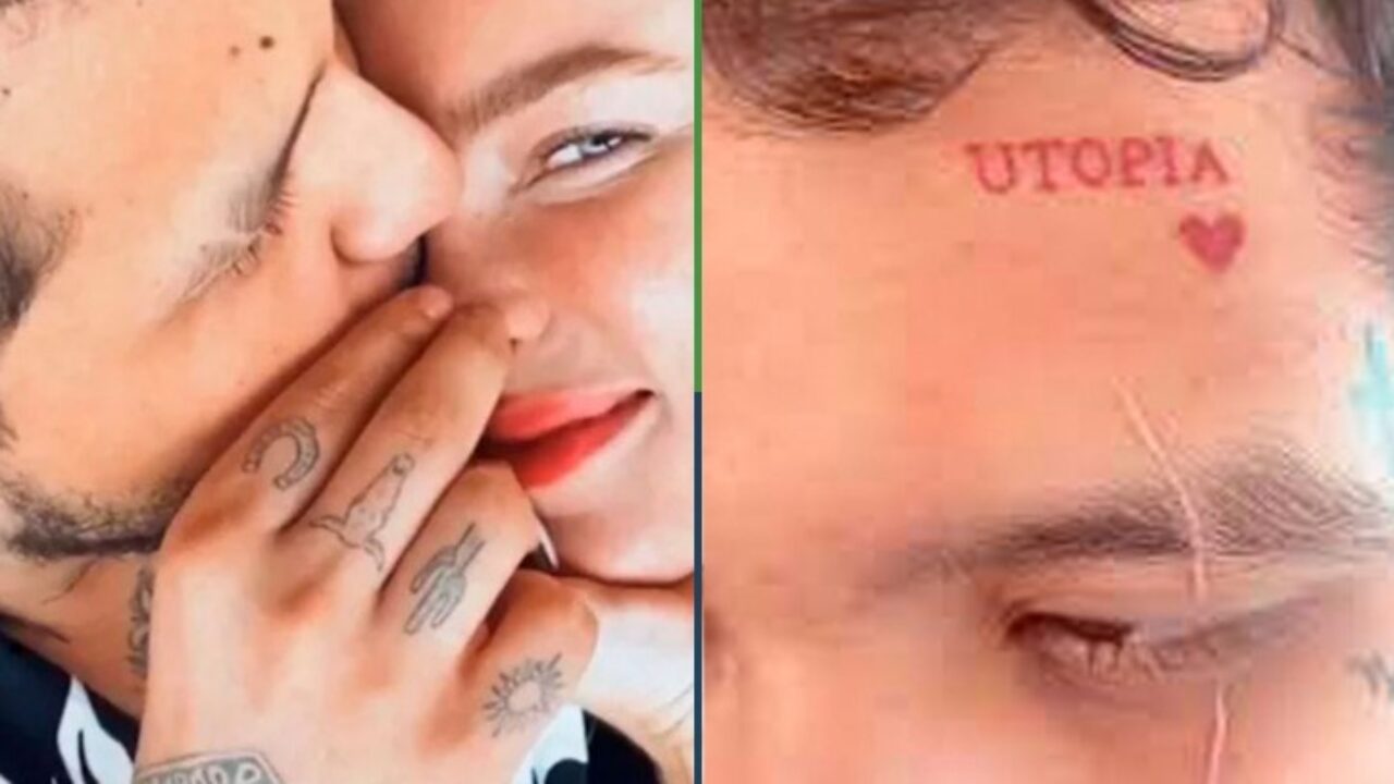 Nodal se tatuó en el rostro la palabra ‘UTOPÍA’, nombre del segundo y más exitoso álbum de Belinda, con el cual logró un éxito en ventas en el 2006.