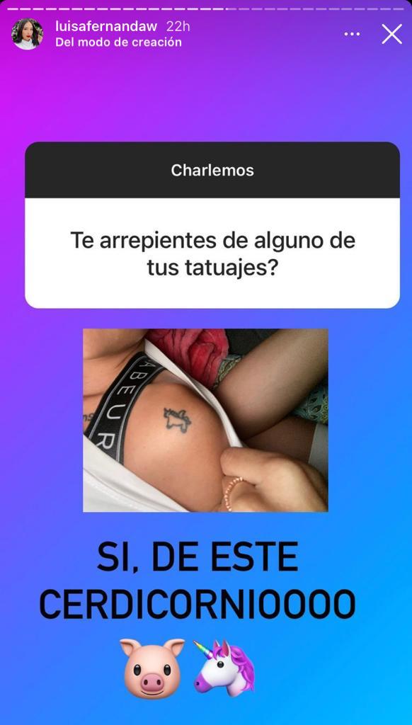 Luisa Fernanda mostró el tatuaje de unicornio que tiene en su hombro izquierdo, el cual según algunos internautas “parece un croquis”.