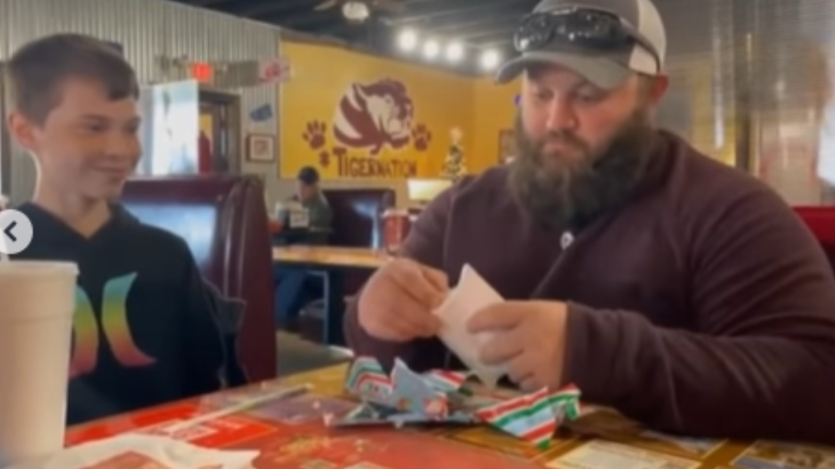 “Te quiero mucho”, dice la tarjeta de regalo que escribió el joven. Luego, el hombre procede a abrir el regalo. Dentro hay una caja negra mediana.