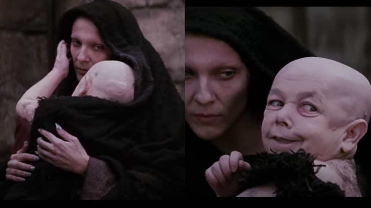 Una de las escenas que más causa conmoción de La Pasión de Cristo dirigida por Mel Gibson es cuando aparece el diablo cargando a un bebé, cuando Jesús recibe fuertes latigazos en público.