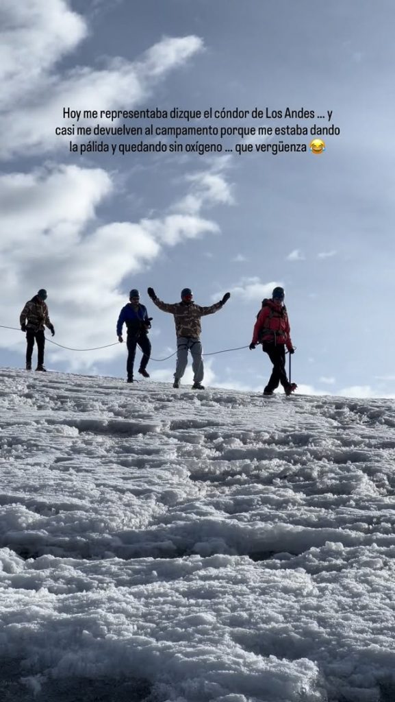 “Hoy por primera vez en mi vida llegué a una cumbre. Y casi me les voy por creerme un hombre de las montañas que entrena en llano grande y escucha música andina. (…) Hoy disque me representaba el cóndor de Los Andes y casi me devuelven al campamento porque me estaba dando la pálida y quedando sin oxígeno, qué vergüenza. (…) Ya terminamos las grabaciones del documental. ‘El último récord’”, escribió Mateo.